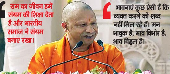 योगी ने कहा कि वर्षों के अंतराल के बाद इस चिरप्रतीक्षित मौके पर अंतर्मन में भावनाएं कुछ ऐसी हैं कि व्यक्त करने को शब्द नहीं मिल रहे हैं। मन भावुक है, भाव विभोर है, भाव विह्वल है।